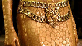 Note that the ‚headpiece‘ (first picture) doesn’t seem to belong to the costume shown in the movie, except if it was completely covered by hair. Also note the snaps on the backside, next to the zipper. I suspect that the ’scale spine‘ jewelry Dame Vaako is wearing in the movie was attached to them. I also suspect that this ’scale spine‘ is originally attached to the necklace, which is missing in this costume sale.