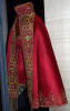 Cloth of gold velvet made in Florencee, Italy; orphreys and hood embroidered in England and possibly added in the 17th century.
