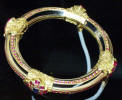 The inventory of Elizabeth I’s jewels in 1587 describes a rock crystal bracelet, set with „sparcks of rubies, and little sparcks of saphiers.“ This bracelet, which may be the one described, is an outstandingly rare object today. No other Indian bracelets like it have survived from that period.